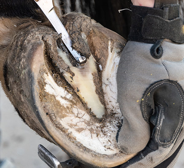 Entretien du pied (sabot, onglon) , traitement des fourmilières, abcès, fourbures ...